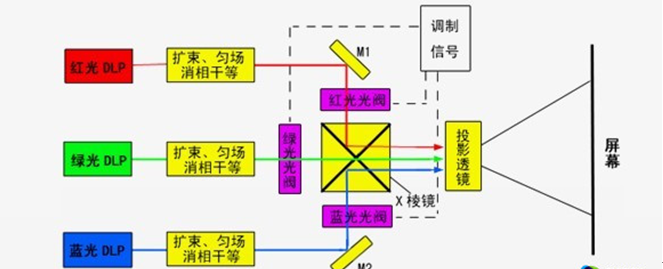 早在上世紀(jì)80 年代末,發(fā)軔于軍工領(lǐng)域的大功率半導(dǎo)體激光(LD)技術(shù)、全固態(tài)激光(DPL)技術(shù)和微型顯示器系統(tǒng)技術(shù)的長(zhǎng)足進(jìn)展,使激光顯示技術(shù)開始向?qū)嵱没~進(jìn),特別是激光投影顯示技術(shù)。